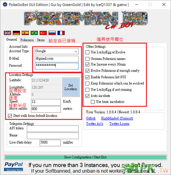 replyreload += ',' + 2052738;網上一堆賣腳本的 這版免翻譯 直接自己輕鬆設定 想抓什麼自己設定 圖片有介紹 不狙擊 還沒被鎖過 記得改座標要等1小時就好 目前我都常駐在台南抓噴火龍、鯉魚王、伊布、迷
