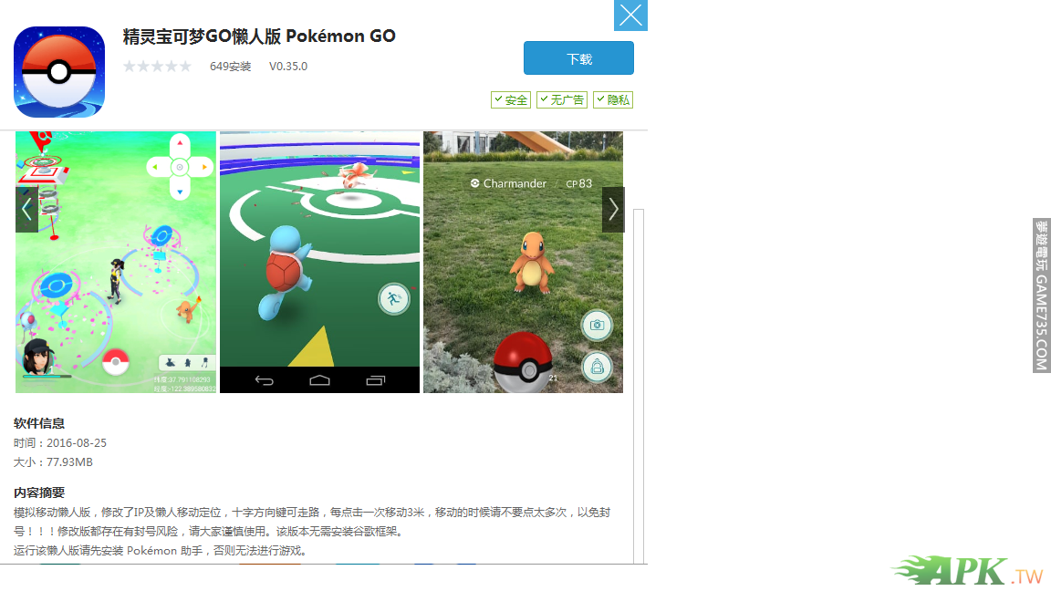 replyreload += ',' + 2055930;[免ROOT]安卓破 解 Pokemon GO懶人版 PokemonGo-Plugin_V1.0.0.35.0 這就是最新版本安卓 懶人版的Pokemon GO了,直接安裝登錄賬號就能玩啦~(登錄時記得開GPS哦,否則地圖