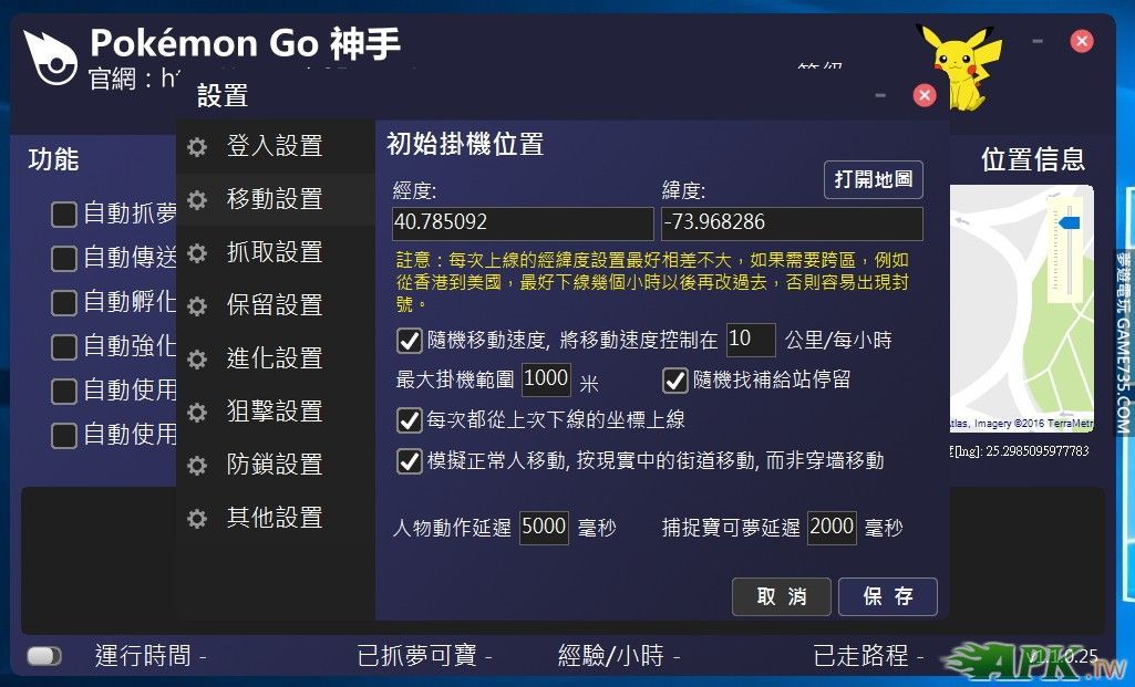 replyreload += ',' + 2056515; 更新內容: 1、增加從上次下線的座標上線的功能,防止每次都同一位置上線,並且座標變動過大導致數據異常。 2、增加模擬正常人移動,按現實中的街道移動而非穿牆移動的開關設置