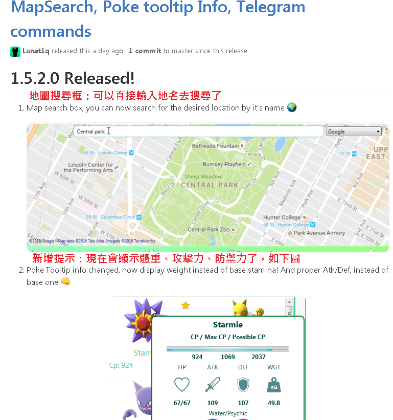 replyreload += ',' + 2058995; Map search box, you can now search for the desired location by it's name :earth_africa: Poke Tooltip info changed, now display weight instead of base stamina! And p