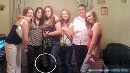 女生合影中,在大腿之中出現了神秘的小孩面孔