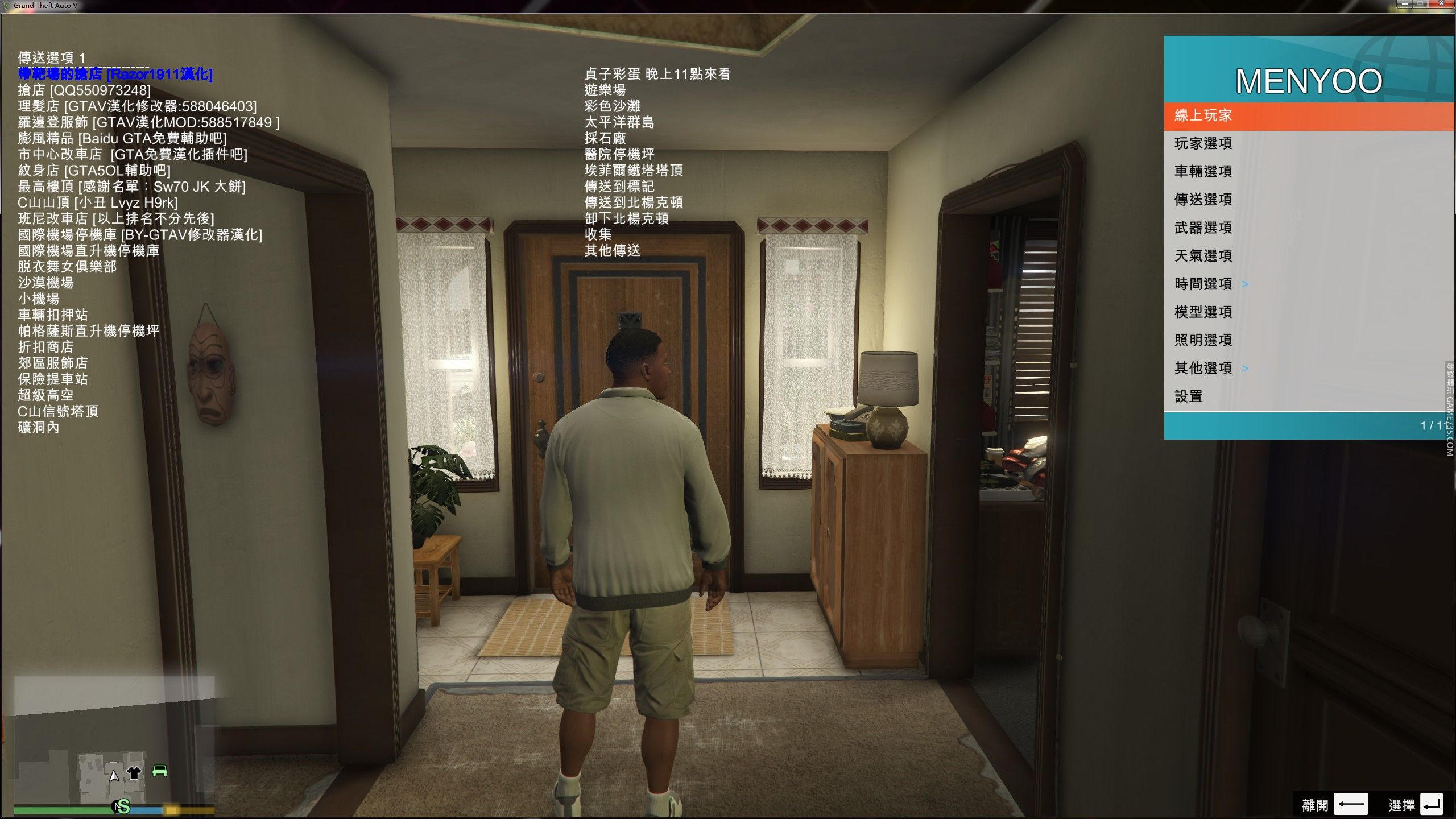 replyreload += ',' + 2071174; 打開修改器是英文的朋友打開主菜單-點擊最後一個選項--點擊第三個選項--把裡面7個選項裡面的字體都換成裡面的第一個 就是中文了. 還有一個更簡單的方法就是 把menyooStuff文件夾m