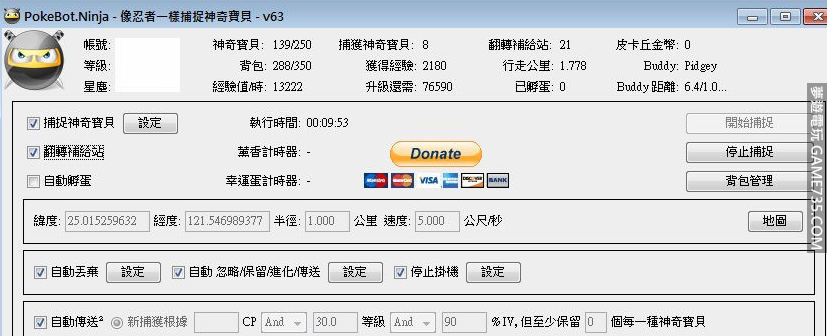 replyreload += ',' + 2071410; 使用方法: 覆蓋原本的 PokeBotNinja.jar 原本的中文化有很多翻譯錯誤和漏掉的翻譯 v63 因為加入 buddy 的新字串 但原本的中文化沒有加入 所以小黑窗會出現 Missing translation: B