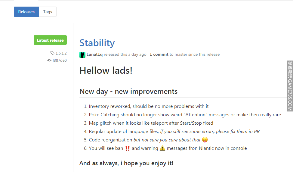 replyreload += ',' + 2071815; 更新內容 海爾德小伙子! 新的一天 - 新的改進 庫存重做,應該沒有更多的問題了 Poke Catching應該不再顯示奇怪的“注意”消息,或使那麼真的很罕見 地圖毛刺,當它看起來像遠