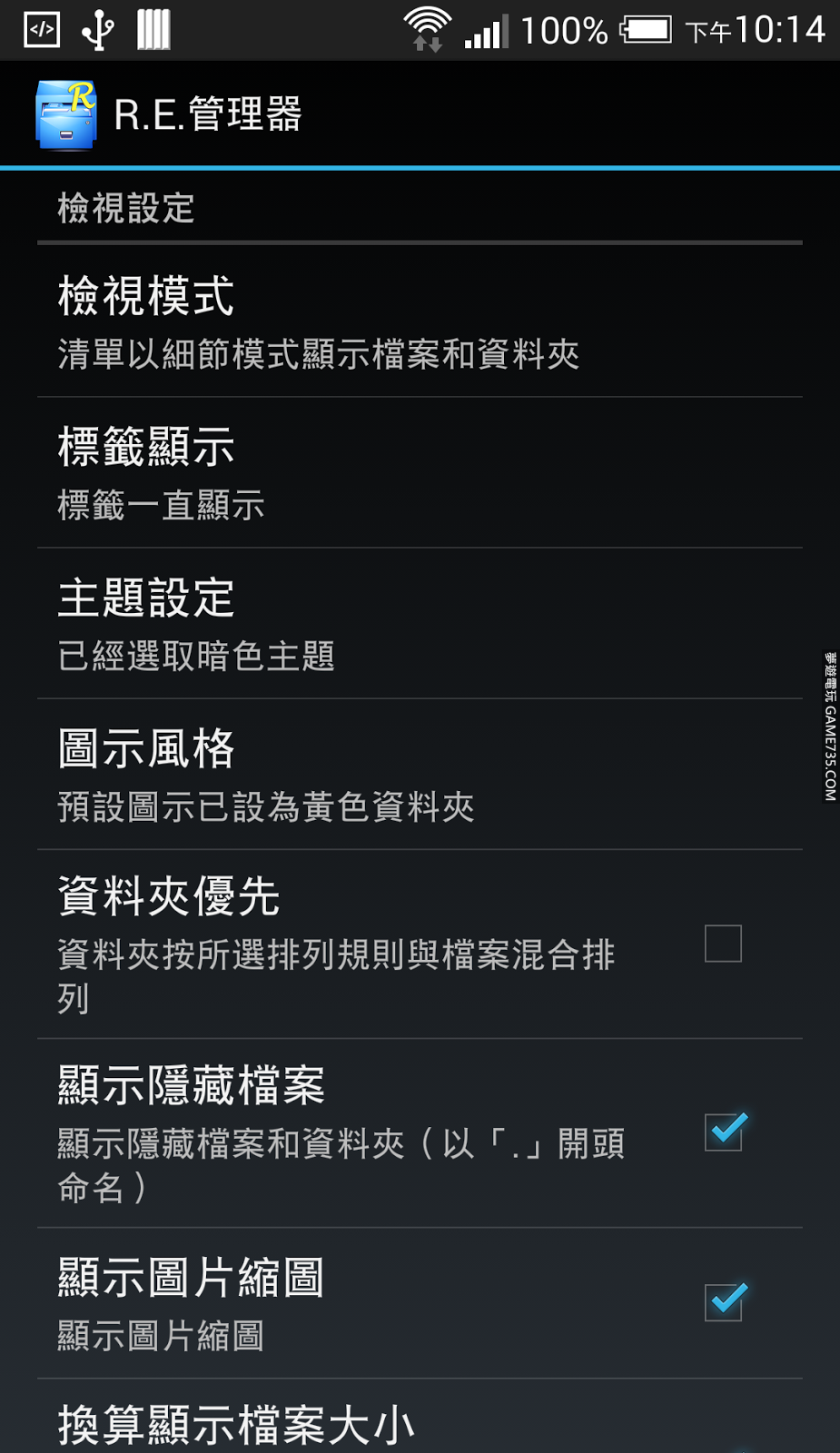 - 顯示隱藏檔案和資料夾- 顯示圖像縮圖- 顯示 APK 檔案的圖示
