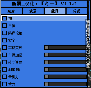 replyreload += ',' + 2075476; 可修改載具加速//改裝等套件 傳送 / 玩家洗錢/無敵等 原版本 https://www.game735.com/thread-300721-1-1.html 此作弊外掛功能較多 中文化版相當適合玩家自行摸索使用