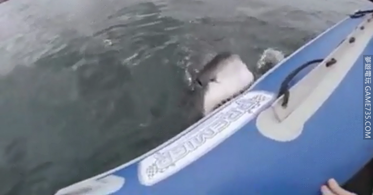 摸魚小心摸到大白鯊! 一張口直接把船咬破 太驚人了!