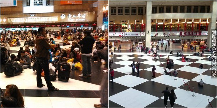 北車大廳「黑白磁磚地板」掀起國外網友熱議!為什麼大多人都選擇坐在黑色格子上呢?