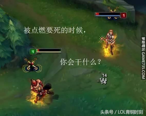 當你中了點燃,你要被燒死了,你要怎麼辦?1.我會深深的吸一口氣,對著身體猛吹,意圖通過降低周圍溫度,使其熄滅……對了,如果有炮車,趕緊補了……放下鼠標雙手合十:死不了死不了死不了!然後回答一下這張圖,假
