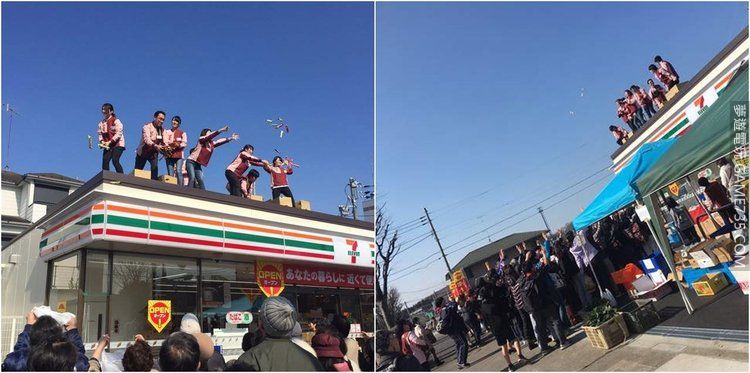 店員超拚!日本便利超商店員「爬上屋頂慶祝開店」現場景象超嗨!