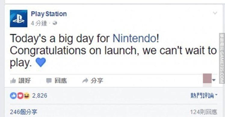連競爭對手都想玩!任天堂新主機Switch的魅力連PlayStation都擋不住..官方Po文大方祝賀!