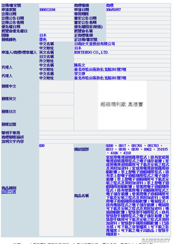 據台灣經濟部智慧財產局商標資料檢索系統資料顯示,任天堂已於3月7日申請註冊了Switch專用遊戲《超級馬里奧:奧德賽》的中文商標。