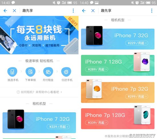 近日支付寶芝麻信用聯合趣先享推出了租賃IPHONE7手機的業務,想要用上iPhone7但是卻囊中羞澀的朋友也不用琢磨著去賣腎啦。一起來瞭解一下這項新業務吧。