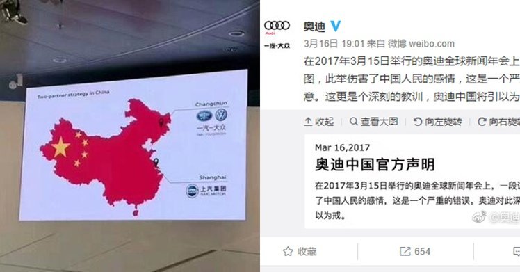 巨嬰國又哭了!奧迪發表會用這張中國地圖被罵翻「怎可少台灣」網友回覆更讓人噴飯!