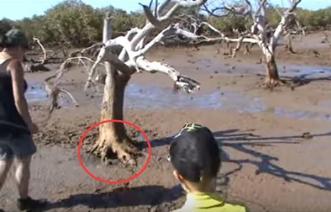 女孩在泥灘上發現這棵樹「樹根好像在動」  誰知道挖開後看到這個東西:賺翻了!