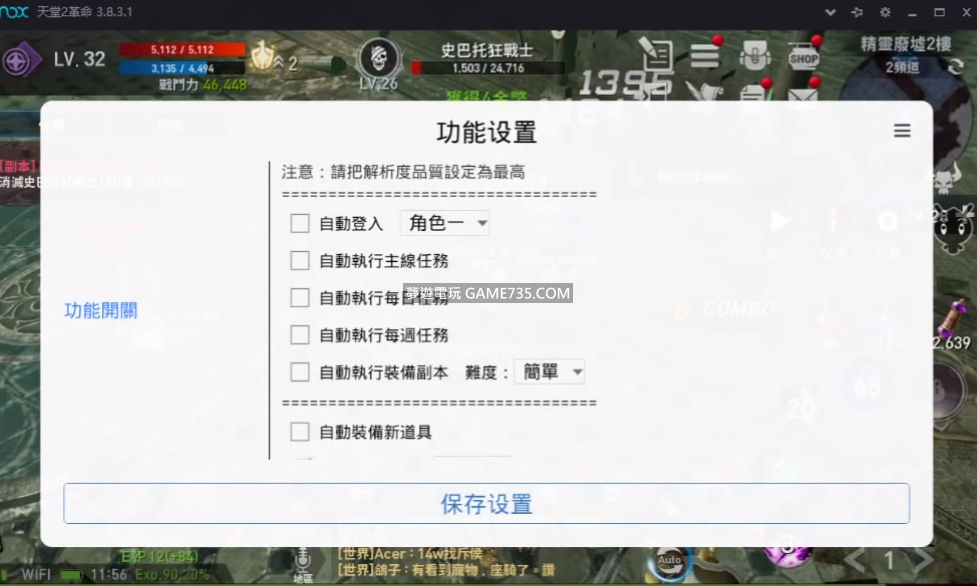 replyreload += ',' + 2096209; 注意事項: 1、請將模擬器的分辨率設置為720(寬)x1280(高),如果不是這個分辨率的手機會不支持。 2、請將遊戲設置中的解析度品質設置為最高,其餘的設置為低, 如果設置以後畫面還