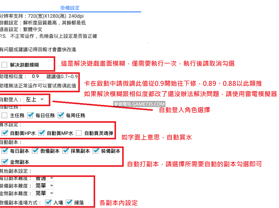 replyreload += ',' + 2096534; 使用前須知: 1、分辨率僅支援720*1280 dpi320。如果手機分辨率不支持,請用模擬器進行掛機。 2、安裝外掛時提示已阻止安裝,請取消手機中的驗證應用即可。 3、推薦雷電模擬器,程