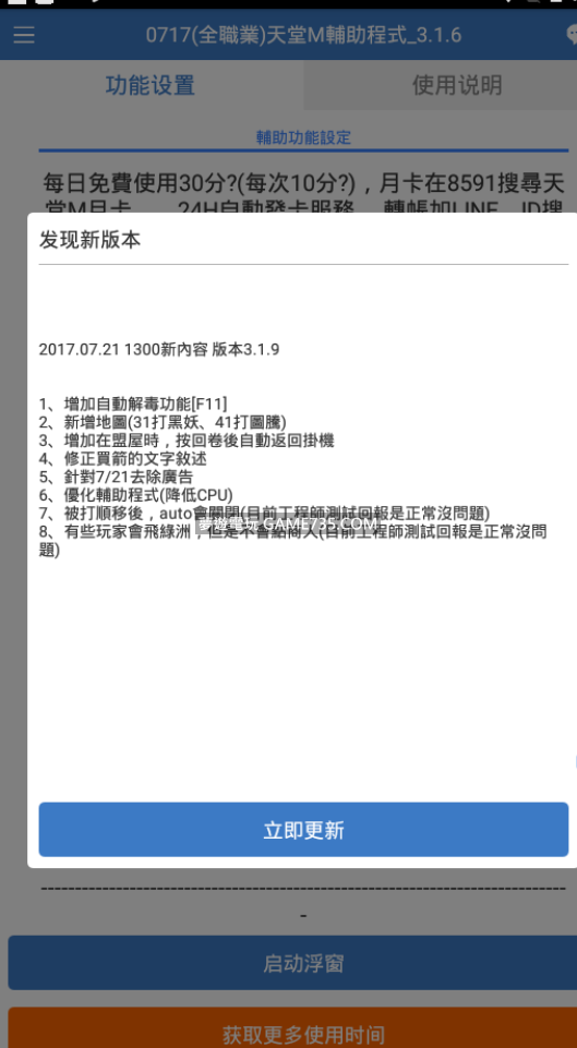檔案下載 下載前請詳細閱讀以下注意事項: ✮請使用雷電模擬器 版本1.1.1 點我下載(雷電1.1.1) ✮模擬器解析度請選擇"960x540 (dpi 160)、幀數設置:10、請打勾(多開時關閉音頻)" ✮遊戲務必設定F5魂體、F6高治、F7澄水、F8順卷、F9三重矢、F12回卷,其他可自行設定 ✮本輔助程式會優先啟動紅版天堂M(可交易),其次為藍版天堂(不可交易) |