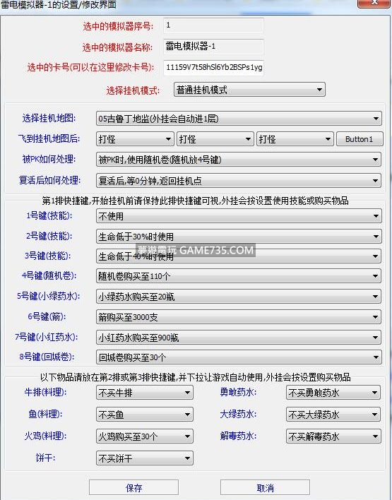 解壓縮後把apk檔丟進模擬器安裝 10.模擬器桌面➥系統應用➥再安裝第二個谷哥框架/谷哥安裝器,按照步驟安裝。韓版MOMO1.1.8忽略9.10這兩個步驟 11.依指示安裝谷哥框架後,重開模擬器。 12.模擬器桌面登入PLAY遊戲,需使用谷哥帳號才可登入。 13.雷電2.0.4.1跟天堂M主程式安裝完畢。 14.下載QOO APP丟進模擬器安裝。模擬器桌面已有QOO APP請忽略此步驟 15.模擬器桌面點擊QOO➥QOO介面右上☰符號➥我的遊戲➥天堂M更新安裝。15-1.螢幕較小的玩家開啟QOO,需要縮小視窗,才可看到更新安裝、 更新完畢後記得打開固定窗口大小再重開模擬器(下面有說明) 16.進入遊戲更新天堂M,日後遊戲更新也都用QOO。 17.模擬器虛擬定位設定在泡菜國。非必設。 一.大熊使用教學,基本環境設置 1.關閉防毒軟體或是允許使用。 2.大熊資料夾【不可命名中文名稱】 ,下載最新版後,解壓縮到【電腦桌面】。 3.模擬器解析度調成1280*720 (dpi 240),並固定視窗大小。(如下圖) 固定內建視窗大小;開啟打勾。只要調整過視窗大小,都必須重開模擬器了 因為再打開固定,只是固定最後大小,而不是固定內建大小(上面15-1補充說明) 有多開才需要改如下圖,單開偵數50~60 4.關閉雷電模擬器(不是重啟),重開後看看是否有套用上述設定。 若有更改模擬器設定,必須要關閉重啟,才會套用新設定。 5.測試斷線自動重新啟動天堂M相關設定如下:↩重點功能請重視 若之前使用相同模擬器+其他家APK掛過,而沒有重新安裝天堂M這自動重連功能無效, 甚至更有可能會有未知問題,欲享受大熊更完善的功能,請讓自動連線功能有效。 測試斷線自動連:從模擬器桌面開始點掛機,可以順利進去打怪即可 過程大約3~4分鐘,若過了還沒進去,那就是無法自動連線請讓模擬器 乾淨的只有天堂M,沒有其他非必要程式軟體 (尚未使用過大熊設置不適合測試)二.首次使用大熊開始掛機: 若發現沒改成功,關閉模擬器,關閉多開器,再打開多器,重改一次 人物在遊戲中後,打開大熊執行檔 打開大熊設置/修改。 ❹啟動掛機10分鐘後,信箱有紅點才領信。 關於❻設置請看下方,三.各模式設定 千萬別再拿第2個卡號KEY上去,一樣要等7~10分鐘 然後第2個卡號,也開始扣時間了,大熊不會再補卡給你喔。 三.各模式設定: 1.協助模式: 請自行買好所須要的補品,自行前往練功地點,接著啟動外掛即可,外掛會顯示監控中。而這模式適合人在電腦前,只練一趟,回村後自動停止掛機。 2.普通模式: (主力開發)undefined 變更設定參數時請先停止掛機,再按保存喔 適合長時間不在電腦前,設定好地圖、補給品(勿負重82%),直到天荒地老,海枯石爛。當然要達到這種功力,需要對天堂m捨取物品設定本身有一定程度的了解,才不會打越重,越掛越窮,每個人裝備、等級、習慣都不同,這個模式需要玩家自行摸索與思考。韓版天堂M 中文化界面完整對照說明 被PK如何處理:這功能已內建可以分辨在地監被打使用順移,所以只要設置回卷即可,或是啥都不幹。 到達掛機地圖後: 天堂M其實只有8個移動方向,分別為上0度、右上45度、右90度、右下135度、下180度、左下225度、左270度、左上315度。其中上、下、左、右度數是可以理解的。假設若要你人物要往左上走;但大熊沒有315度選項,選用310~330都是可以達到往左上走。後方時間1.2.3填入需要讓你的人物走【幾秒】。飛到地點後使用測試移動功能,多多摸索 加入循環掛機進迴圈地圖:回村補給後就換地圖 循環掛機地圖,任意兩個框中有地圖,就會自動進入循環掛機模式, 例如1號框和4號框中,你設置了地圖1、地圖4,就會按照1號->4號->1號->4號...這樣循環打 中間2號框,3號框,空著沒有關係 不想用循環掛機的,點刪除按鈕,把4個框裏的循環掛機地圖都刪掉,就不會循環 循環掛機的邏輯: 被打回城後,自動換下一個地圖,物品不足回城補給後,自動換下一個地圖。 迴圈地圖另一種說法邏輯解釋: 當迴圈地圖 都是空白時,自動掛機地圖只讀上面的選擇掛機地圖 若迴圈地圖設定2張地圖之後,上面的選擇掛機地圖會變成觀賞用自動進入限時地監系統: 依照個人時間習慣,選擇幾點就會自動進入限時地監,時間顯示是24小時制 奇岩、海音限時5小時、天空=夢島1小時、歐瑞=拋棄之地2小時、精墓1小時自動買水系統: 第一排快捷列,由左至右對應1~8號快捷鍵。(掛機狀態開始監控都在第一排) 4.6.7號鍵有設定購買時,會偵測數量,使用即將完畢自動回卷 第二、三排快捷列,不須區分幾號快捷鍵undefined隨意按住1~8號鍵地方,左 右滑動可變換 設定是數量購買上限: 例如勇水大熊設定購買30瓶,人物身上數量5,那麼則會自動買25瓶。注意事項:啟動掛機開始監控中,不可切換在二、三排快捷列。 物品或技能下拉:按住該物品往下移動至螢幕外,可自動施放,天堂m內建功能。 低血保護回城: 強烈建議設定40%以上 。觸發條件時大約會慢個0.5秒才使用回卷,故建議預設高一點 無怪地監走順疑或野外走幾步: 使用請務必設40~60秒以上,這功能是偵測KILL消失後計算。 無怪重啟遊戲:使用請務必設120秒以上,這功能是偵測KILL消失後計算。 技能開怪:可設定沒用到的快捷鍵開怪,此功能在自動歐瑞副本時無效,進歐瑞時不用修改不勾選,其餘地圖皆可使用。 PVP反擊:勾選後被PK如何處理 暫時失效,反擊至低血保護 觸發條件才會飛回村,對方停止攻擊,我方會持續攻擊2~5秒停止攻擊後,若無其事繼續掛機