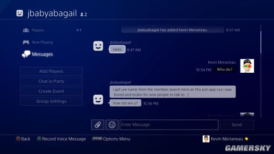 不知道各位最近有沒有在PSN上碰到這樣的情況,偶然有一些名字看起來像亂碼的「玩家」跟你私聊,先是聊些人畜無害的學校、遊戲之類的話題,突然話鋒一轉,要給你看些「大寶貝」,而且大部分都是用英文。如果你還