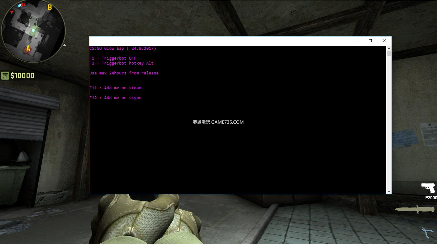 2.按F1啟動透視發光,然後按F2鍵進行自瞄開槍觸發