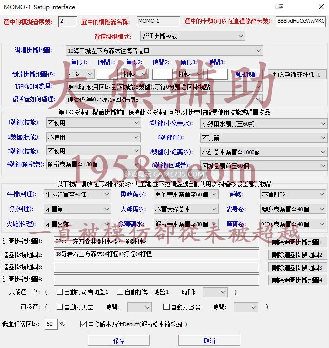 0926改版內容:1.增新地監無怪瞬移功能(內定為5分鐘沒打怪則瞬移) 自動打奇岩,海音,歐瑞,默認無怪瞬移 識別的地監有: 螞蟻洞 古魯丁地監 奇巖地監 象牙塔 騎