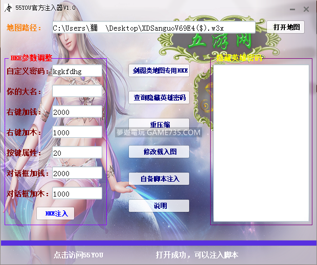 replyreload += ',' + 2106010;一鍵注入hke腳本,和一般腳本注入器最大的不同點在於, 你所設定的密碼會被加密,用j語言編輯器反查去看只會看到一串亂碼, 簡單而言就是,全世界沒人能反向查詢你地圖的指令開啟密