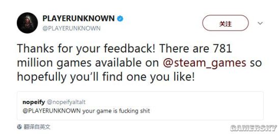 《絕地求生》作為時下最火爆的一款遊戲在優化、網絡等問題上備受玩家詬病。一名玩家近日就在推特上艾特《絕地求生》創意總監稱:「你的遊戲就是一坨翔」。 而在面對更多玩家關於遊戲優化問題時,這位創意總