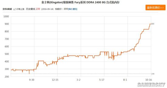 內存價格上漲在PC圈內已然成為一個日常話題,不知有多少想裝機的玩家被不斷水漲船高的內存價格勸退。10月份以來,以金士頓DDR4 2400 8G內存為例,價格已經漲至899元大關,之差一塊就升至900元。而同一家的DDR4 213