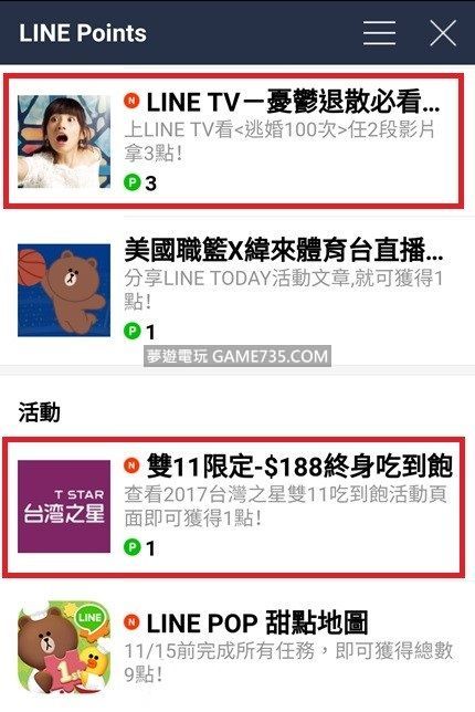 2017/11/9 LINE Points免費代幣 3+1+1+3+1+1點