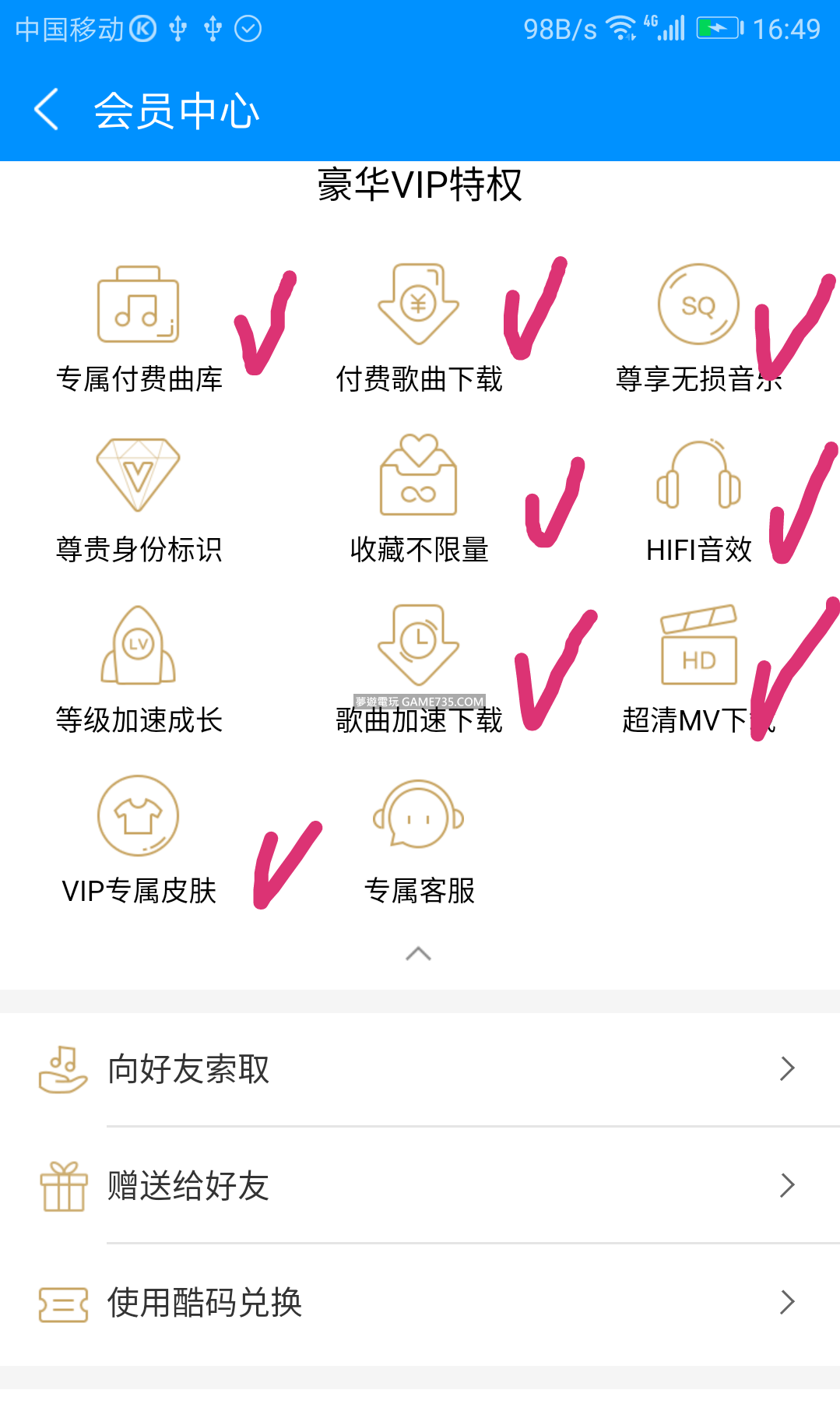 replyreload += ',' + 2109518;酷狗音樂版 破解說明: 免登錄即享有以下特權- 1.豪華VIP特權 見上圖,包括無損音樂、付費歌曲下載、歌曲加速下載等 2.所有歌曲免費試聽和下載 包括付費歌曲在內,所有歌曲可以無限