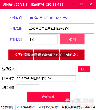 replyreload += ',' + 2109519;大家都是聰明人,看到軟件就會用的 更新記錄 V1.2版 1、增加一鍵修改至指定時間; 2、北京時間的顯示移至狀態欄; 3、修復聽停秒數為空時的邏輯錯誤。 V1.3版 1、獨立延時暫停模塊並