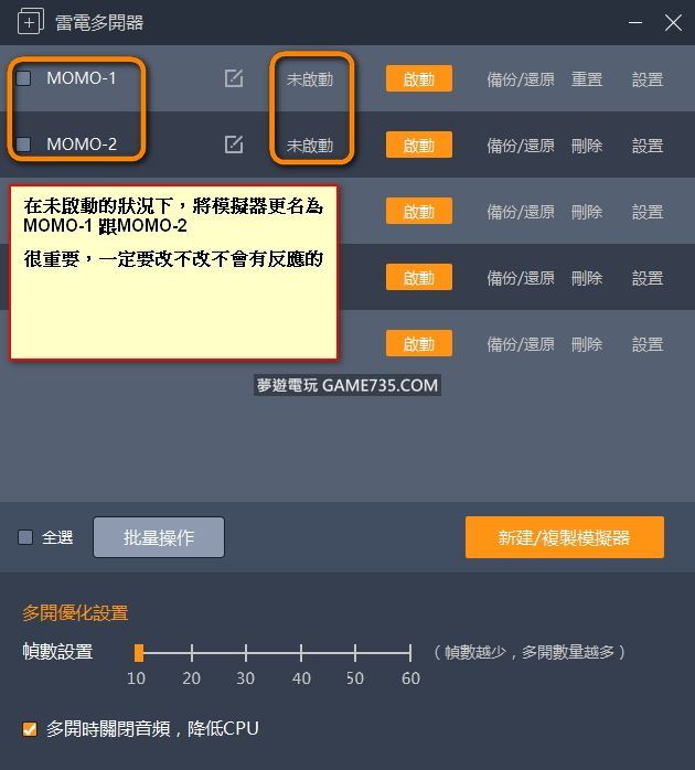 replyreload += ',' + 2109826;免費版僅能使用正式版的協助模式,並且無斷線自動重連啟動天堂m的功能 直接下載程式就可以用 使用教學 1.先用多開器將模擬器改名為MOMO-1 跟 MOMO-2 *使用期限