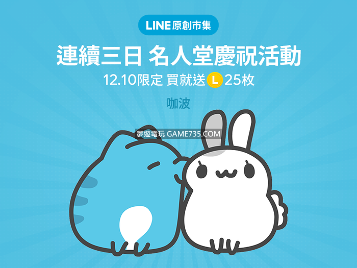 2017/12/10~12 連續三日名人堂慶祝活動登場 購買回饋25代幣 購買當日堂主原創貼圖就可獲得25枚代幣!詳細活動辦法:http://lin.ee/hUE3n9w 首日回饋是剛加入名人堂的貓貓蟲咖波!恭喜咖波賀喜咖波~點擊連結點即可