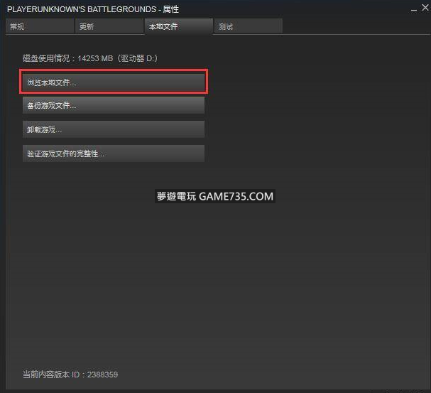 打開steam右擊PUBG屬性,瀏覽本地文件