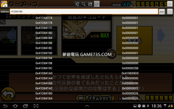 replyreload += ',' + 2129000;基礎篇:不過這方法過時了 且 有點慢 1)先用上面的方法把ID 1號的基礎小貓地址找出來 新版教學 7.0 以前直接搜尋 419;1;0::9 419;1;0::9(D值)是還沒取得坦克貓的找法 419