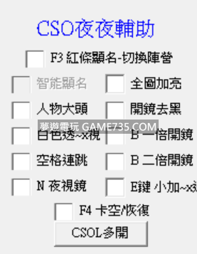 replyreload += ',' + 2130111;CSO夜夜輔助V4a (dll版本) 目前還在測試中...發出來僅為測試,嚴禁販售 V4a更新說明:修復檢測問題 (測試1小時無偵測問題) 使用說明:將輔助放入Bin資料夾開啟,點擊