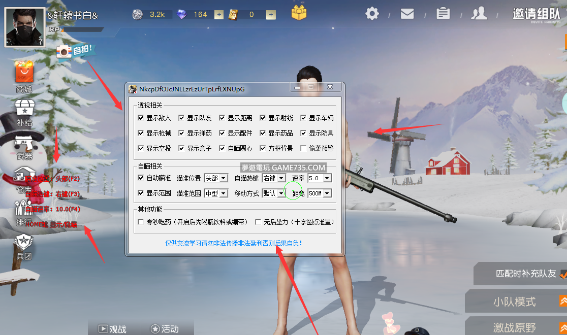 replyreload += ',' + 2131242; 下面是使用說明:(顯示物品.距離!骨骼透視!自瞄鎖頭!默認增加傷害.無視防禦!子彈穿牆!超級跳躍!零秒吃藥!強制站立!捆綁禁錮!自動跑步!無限滑翔!無後坐力等等)功能