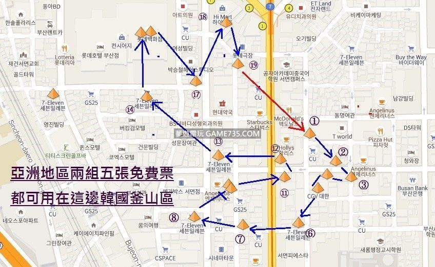 正文摘要:¹²代表亞洲區 ³代表歐洲(印度)以及美洲... 整理一下步驟:1. 7/21 11:00-12:30 時區調成GMT-10檀香山, 顯示為7/20 17:00, 打1場7/19票, 打5場7/20票 2. 7/21 12:30-14:00 時區調成GMT+8台灣, 顯示為7/21 12:30, 打5場7/21票 3. 7/21 19:00-20:00 時區調成GMT+13東加塔布島/努瓜婁發, 顯示為7/22 00:00, 飛往歐洲, 打5場7/22票 or 7/22 02:00-05:00 時區調成GMT+8台灣, 顯示為7/22 02:00, 飛往美洲, 打5場7/22票 以下參考上面 台灣時間(亞洲地區)㏴的11am-2pm 歐洲地區是㏴的5pm-8pm 美洲地區是㏵的2am-5am ⒈ 台灣時間活動開始前,把手機時區改為GMT-10檀香山,它會顯示為7/20的17:00。 ⒉ 飛到以下的韓國釜山去使用五張免費票(可含之前存的免費票) ⒊ 五張打完後,把手機時區改為GMT+8台灣, 顯示為7/21的12:30。 ⒋ 開始繼續打另外五張票,此時還在韓國釜山。 ⒌ 此時實際台灣時間應該是下午兩點過後,把手機時區改為GMT+13東加塔布島/努瓜婁發, 顯示為7/22的 00:00。 ⒍ 可飛到以下印度或丹麥哥本哈根(請擇一)。以上若能在一小時內打完五場的話,以下就省略。 ⒎ 假如覺得在歐洲(印度)區無法用完五張票,請在隔天㏵的2am之前,把手機時區改為MT+8台灣, 顯示為7/22 02:00。 ⒏ 飛去美國紐約中央公園繼續打五張票。 【懶人簡單版】亞洲區飛到釜山去打10張免費,隔5小時再飛法國打5張(或等到隔天早上2點再飛去美國打五張) 35.154632,129.0606,韓國釜山 48.890717,2.23783,法國巴黎 40.7588,-73.98508,紐約時代廣場 【亞洲區&歐洲區,請用下面座標】 請依照順序一一打,要先事前匯入座標裡面。 註(一):韓國釜山都是贊助道館;中印度是公園內EX PASS考古題;丹麥是熱門地區,有五個是贊助道館。最後是美國紐約中央公園,除了有一個不是考古題或贊助以外,其他都是。 註(二):盡量座標選擇相鄰較近的,但是距離太遠也要注意CD冷卻時間,兩地間最遠差不多是1-2分鐘,這算合理範圍內,因進道館也要把等待秒數時間算進。 【亞洲區韓國釜山】 35.155111,129.059972, 1-韓國釜山¹² 35.154633,129.060513, 2-韓國釜山¹² 35.154361,129.060833, 3-韓國釜山¹² 35.154406,129.060332, 4-韓國釜山¹² 35.154169,129.0601429, 5-韓國釜山¹² 35.153572,129.0597379, 6-韓國釜山¹² 35.153537,129.058574, 7-韓國釜山¹² 35.153679,129.0575539, 8-韓國釜山¹² 35.154167,129.0583329, 9-韓國釜山¹² 35.15423,129.0582739, 10-韓國釜山¹² 35.154361,129.0594439, 11-韓國釜山¹² 35.154667,129.0593609, 12-韓國釜山¹² 35.154729,129.0580559, 13-韓國釜山¹² 35.155738,129.0565619, 14-韓國釜山¹² 35.156836,129.0564419, 15-韓國釜山¹² 35.156853,129.056647, 16-韓國釜山¹² 35.156,129.057583, 17-韓國釜山¹² 35.157013,129.058219, 18-韓國釜山¹² 35.156306,129.0584719, 19-韓國釜山¹² 最後5張免費票,請在下面擇1區打就可 【歐洲(巴黎)區】48.8908059,2.2362219,1-法國巴黎³ 48.890656,2.237693,2-法國巴黎³ 48.890139,2.239722,3-法國巴黎³ 48.890109,2.2425519,4-法國巴黎³ 48.8912919,2.2416819,5-法國巴黎³ 48.891405,2.2410609,6-法國巴黎³ 48.891559,2.237924,7-法國巴黎³ 48.89275,2.239444,8-法國巴黎³ 48.8935819,2.2387579,9-法國巴黎³ 48.892898,2.237386,10-法國巴黎³ 48.892585,2.2361349,11-法國巴黎³ 48.8922289,2.233872,12-法國巴黎³ 48.891937,2.23089,13-法國巴黎³ 48.8901439,2.230631,14-法國巴黎³ 48.8893469,2.228506,15-法國巴黎³ 48.8893469,2.228506,16-法國巴黎³ 48.8894319,2.22808699,17-法國巴黎³ 48.888549,2.2254809,18-法國巴黎³ 【歐洲(印度)區】 12.949933,77.588974,(1)中印度³ 12.950676,77.585704,(2)中印度³ 12.953121,77.5852239,(3)中印度³ 12.954228,77.584325,(4)中印度³ 12.950281,77.5847269,(5)中印度³ 12.948842,77.582744,(6)中印度³ 12.948589,77.580376,(7)中印度³ 【歐洲(丹麥)區】 55.661099,12.562189,1)哥本哈根³ 55.661694,12.561056,2)哥本哈根³ 55.6621589,12.5615649,3)哥本哈根³ 55.661922,12.5620079,4)哥本哈根³ 55.66229,12.5634129,5)哥本哈根³ 55.662969,12.562869,6)哥本哈根³ 55.6628449,12.561983,7)哥本哈根³ 55.6633939,12.56092,8)哥本哈根³ 【美洲(紐約)區】 40.773101,-73.980129,<1>紐約中央公園³ 40.772229,-73.979064,<2>紐約中央公園³ 40.772486,-73.9776509,<3>紐約中央公園³ 40.7705019,-73.976537,<4>紐約中央公園³ 40.769851,-73.972398,<5>紐約中央公園³ 40.769874,-73.971009,<6>紐約中央公園³ 40.7727049,-73.9710979,<7>紐約中央公園³ 40.7728629,-73.971843,<8>紐約中央公園³ 40.773397,-73.9711169,<9>紐約中央公園³ 40.7743239,-73.9708309,<10>紐約中央公園³ 40.774702,-73.9728109,<11>紐約中央公園³ 40.7757679,-73.975212,<12>紐約中央公園³ 40.776173,-73.9761939,<13>紐約中央公園³ [/td][/tr] [/table] |