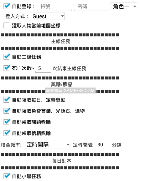 replyreload += ',' + 2141596; 外掛的詳細使用記得先去看一遍,否則你有可能外掛都不會開 看這篇文章沒任何用處 首先,黑沙M跟其他手遊不太一樣,大部分手遊的主線是等級不到無法繼續做下去而黑沙的主線幾乎是做