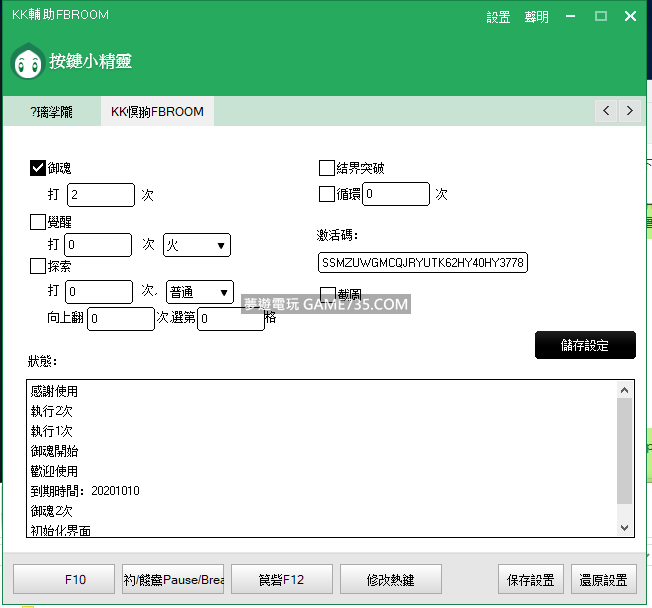 replyreload += ',' + 2148563; 1.關閉防毒(或加入信任) 2.管理員身份開啟 3.將FB GAMEROOM 視窗拉至最小 4.執行時避免讓FBROOM在最上層 5.不可縮小視窗但可以覆蓋 6.覺醒御魂需手動打一次記錄默認層數 7.激活碼