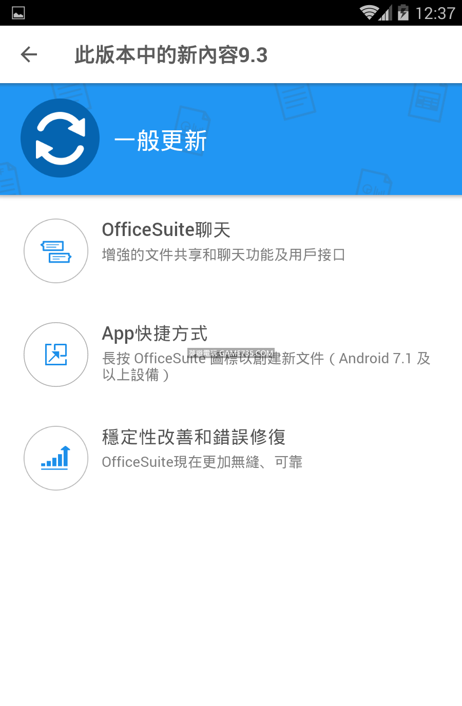 正文摘要:replyreload += ',' + 2154843; 【語 言】英文/繁體中文/簡體中文 【軟體名稱】OfficeSuite 8 Pro + PDF 【版本資訊】v9.3.11972 【軟體大小】46.8MB 【更新日期】2018/03/12 【使用權限】付費 【系統支援】Android 4.0 以上或更高 【軟體介紹】 ‧ 在熟悉的桌面風格界面查看、創建和編輯複雜的辦公文件 ‧ 全面兼容微軟格式,包括DOC、DOCX、DOCM、XLS、XLSX、XLSM、PPT、PPTX、PPS、PPSX、PPTM、PPSM ‧ 支持PDF文件,包括PDF相機掃瞄和導出為PDF功能 ‧ 支持更多常見的格式,如RTF、TXT、LOG、CSV、EML、ZIP;Open Office格式(ODT、ODS和ODP) ‧ 與File Commander整合,可快速方便地訪問本地和遠程文件,包括最近文件、我的文檔文件夾和文檔模板 ‧ 通過Box、DropBox、Google Drive、OneDrive、Amazon Cloud Drive和SugarSync等雲服務文件,此外還可以通過電子郵件、藍牙和Wi-Fi直連進行 ‧ PDF安全和編輯功能,包括數字簽名支持、權限管理、文本轉換為PDF和註釋 ‧ 提供56種語言 優化的圖形和已清理的軟件包,可實現快速加載和小尺寸 無需強制彈出即可安裝File Commander 所有廣告和服務調用已從 刪除活動中刪除主頁中的示例 分析禁用 數十項新功能+修復問題並提高性能 字體包使用:下載並壓縮zip文件,安裝安裝文件,然後將com.mobisystems.fonts文件夾複製到Android / Obb內部存儲器 【軟體截圖】 【軟體下載】 所有站內附件皆會附上安全掃描報告請會員查看純淨度百分比後判斷使用(adsbygoogle = window.adsbygoogle || []).push({});相關檔案須知:取得檔案前,請先詳細閱讀文章內容避免不必要錯誤與誤會發生。也可多參考文章討論樓層內容了解附件檔案相關討論資訊。 【此文章部分內容隱藏中】 解除隱藏說明教學點擊下方 繼續閱讀文章 後請仔細觀看文章內容 並依照指示進行下一步最後完成解除隱藏後系統會回到此文章自動顯示隱藏內容~繼續閱讀 replyreload += ',' + 2154843; |