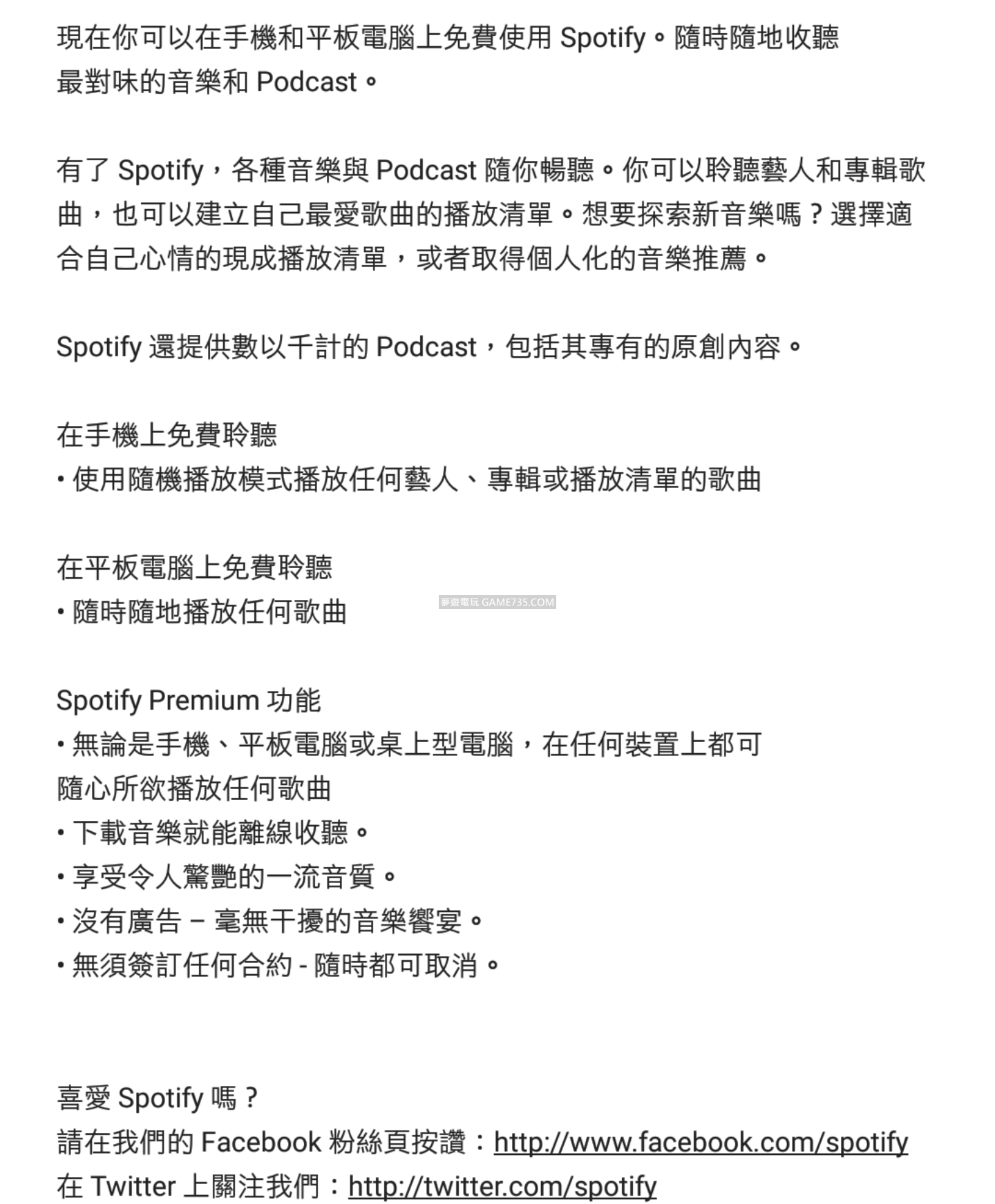 replyreload += ',' + 2162489; 【語 言】英文/繁體中文 多語 【軟體名稱】Spotify music 【版本資訊】v8.4.75.670 【軟體大小】34MB 【更新日期】2018/11/27 【使用權限】解鎖大部分付費