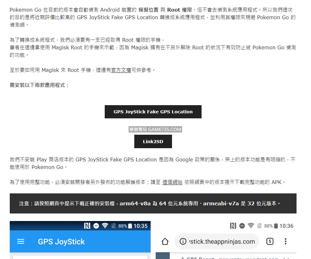 replyreload += ',' + 2171681; Pokemon Go 在目前的版本會自動偵測 Android 裝置的 模擬位置 與 Root 權限,但不會去偵測系統應用程式。所以我們這次的目的是將近期評價比較高的 GPS JoyStick Fake GPS Location