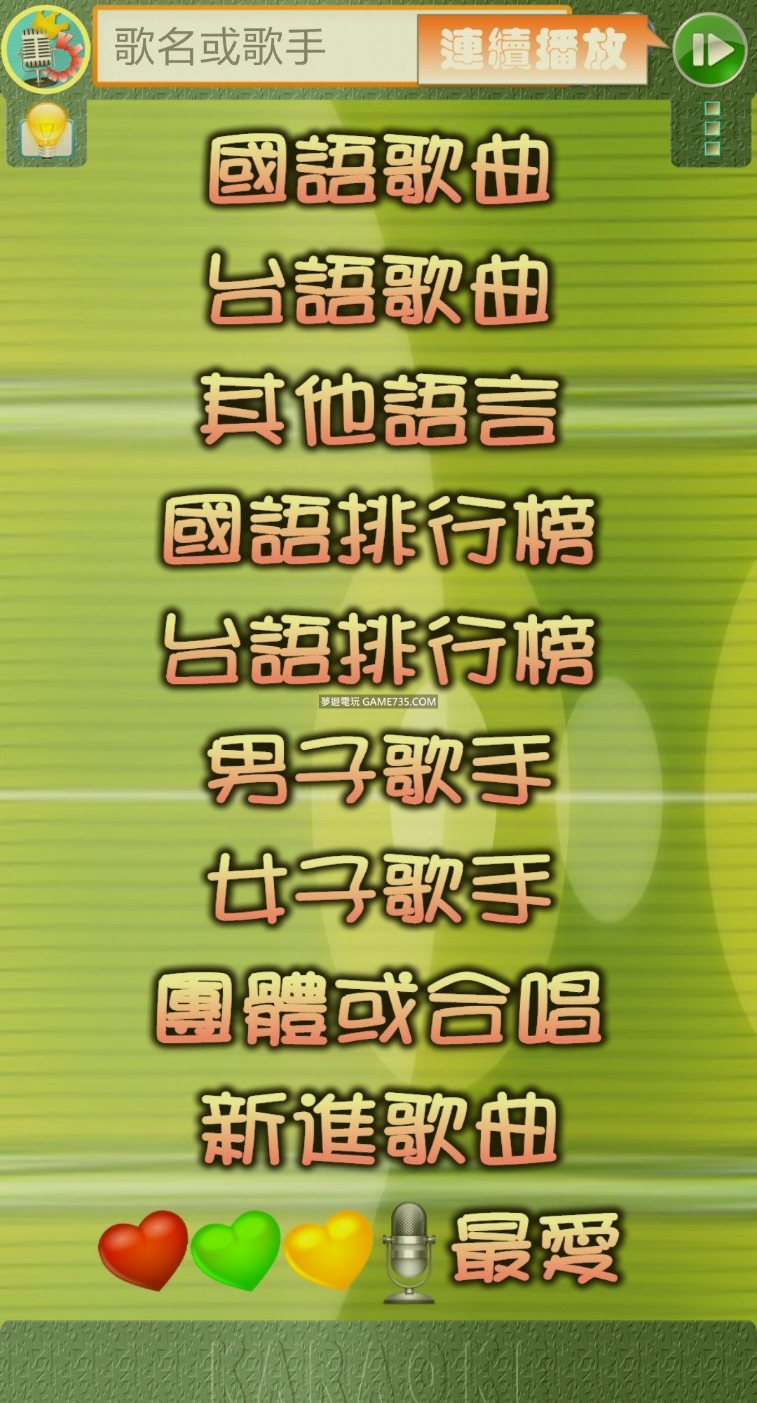 正文摘要:replyreload += ',' + 2172347; 【語 言】繁體中文 【軟體名稱】歡唱K歌王-練歌聽歌神器 【版本資訊】v7.0 【檔案大小】14.8M 【更新日期】2019/2/19 【使用權限】去廣告版 【系統支持】支持Android 4.0.1以上版本 【軟體介紹】 去除廣告版 或你可以在play商店查詢詳情 調整為低亮度,可聽歌 關於這個應用程式 KTV免費唱歌 - 可錄音 席捲亞洲、台灣Super的在地音樂軟體,海量的影片、簡單的播放、全新的體驗、聰明的選擇! 您體驗過隨點隨播隨唱的播歌唱歌軟體嗎?Android的用戶有福了!席捲亞洲、台灣Super的在地音樂軟體:『歡唱K歌王』正式站上舞台,功能強大,影片新又多。愛唱歌、愛音樂的用戶、小孩、青年、長輩 皆適用。還等什麼?趕快下載、立即體驗!永久免費! • 最愛紅心、最愛綠心 及最愛黃心 (建議可用於不同語言並以心心數設定喜愛程度) • 可單次連續播放、循環連續播放 及隨機播放 • 國語排行榜、台語排行榜 • 英語MV、韓語MV • 男女歌手、合唱團體 • 可錄音並與MV影音平行播放 • 可A-B 點循環練唱 • 可語音搜尋 • 可低亮度播放延長裝置使用時間 • 支援智慧型電視SmartTV及其遙控器 • 支援汽車音響播放並可透過方向盤控制鈕控制 【軟體截圖】 【附件下載】 所有站內附件皆會附上安全掃描報告請會員查看純淨度百分比後判斷使用(adsbygoogle = window.adsbygoogle || []).push({});相關檔案須知:取得檔案前,請先詳細閱讀文章內容避免不必要錯誤與誤會發生。也可多參考文章討論樓層內容了解附件檔案相關討論資訊。 【此文章部分內容隱藏中】 解除隱藏說明教學點擊下方 繼續閱讀文章 後請仔細觀看文章內容 並依照指示進行下一步最後完成解除隱藏後系統會回到此文章自動顯示隱藏內容~繼續閱讀 replyreload += ',' + 2172347; |