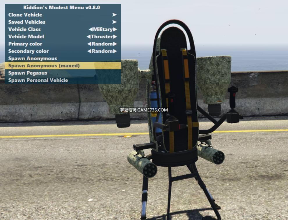 replyreload += ',' + 2175236; 使用方法:1.下載外掛2.啟動GTA5並等待遊戲完全加載3.啟動外掛4.默認按鍵包括:<F5>顯示/隱藏菜單,<Numpad 0>返回,<Numpad 8>和<Numpad 2>在菜單選項中向上/向下。<Numpad 4>和<Num