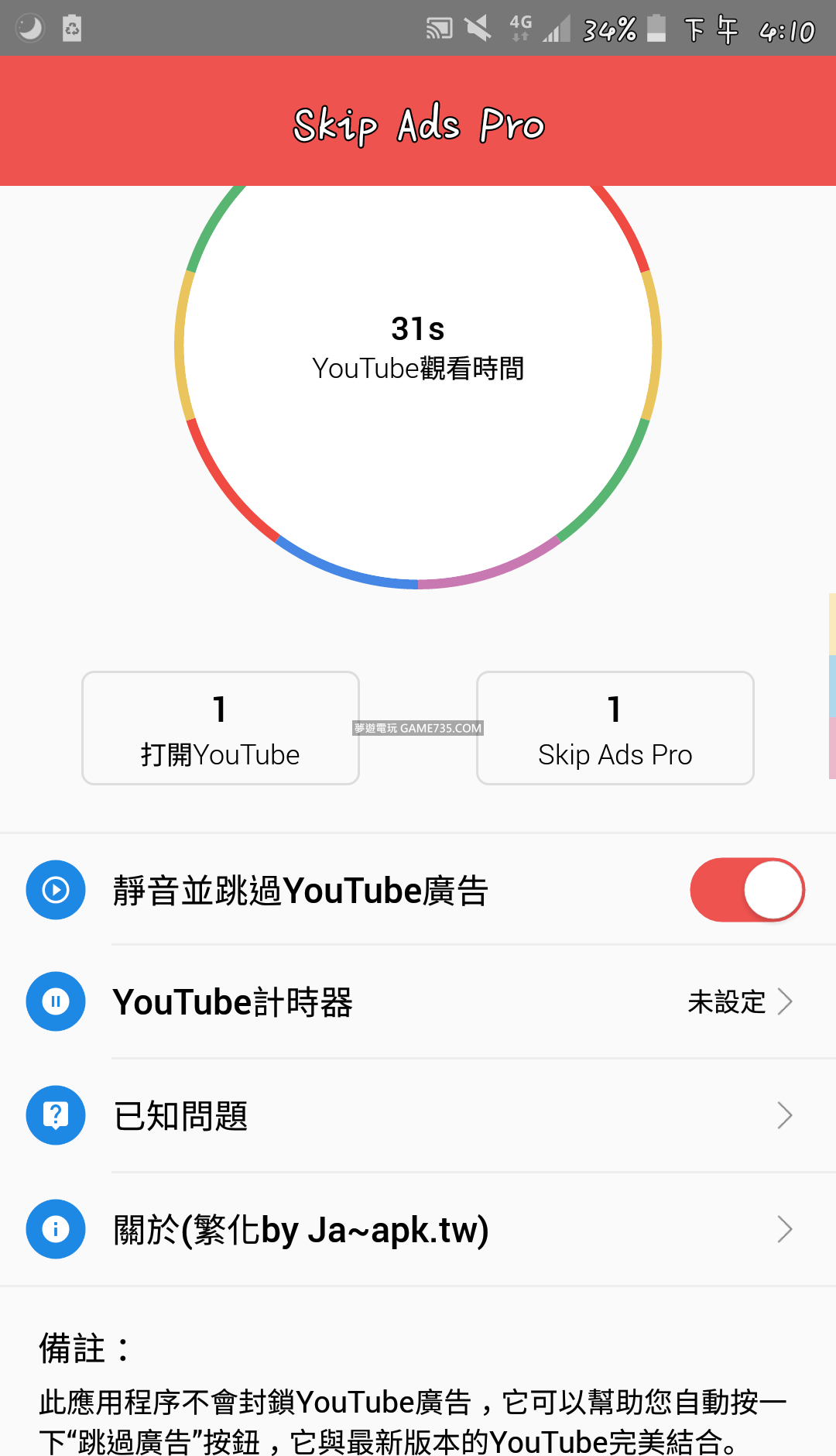 replyreload += ',' + 2178329; 【軟體語言】繁體中文 (默認)【軟體名稱】Skip Ads Pro 【版本資訊】v1.1.9 【軟體大小】1.69MB 【更新日期】2019.03.28 【使用權限】付費版 【系統支援】Android 5+ 或更高的版本