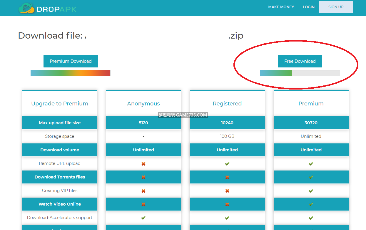 dropapk 免空資源 下載教學 點擊過程中會有彈出廣告 點擊下載後會開始下載