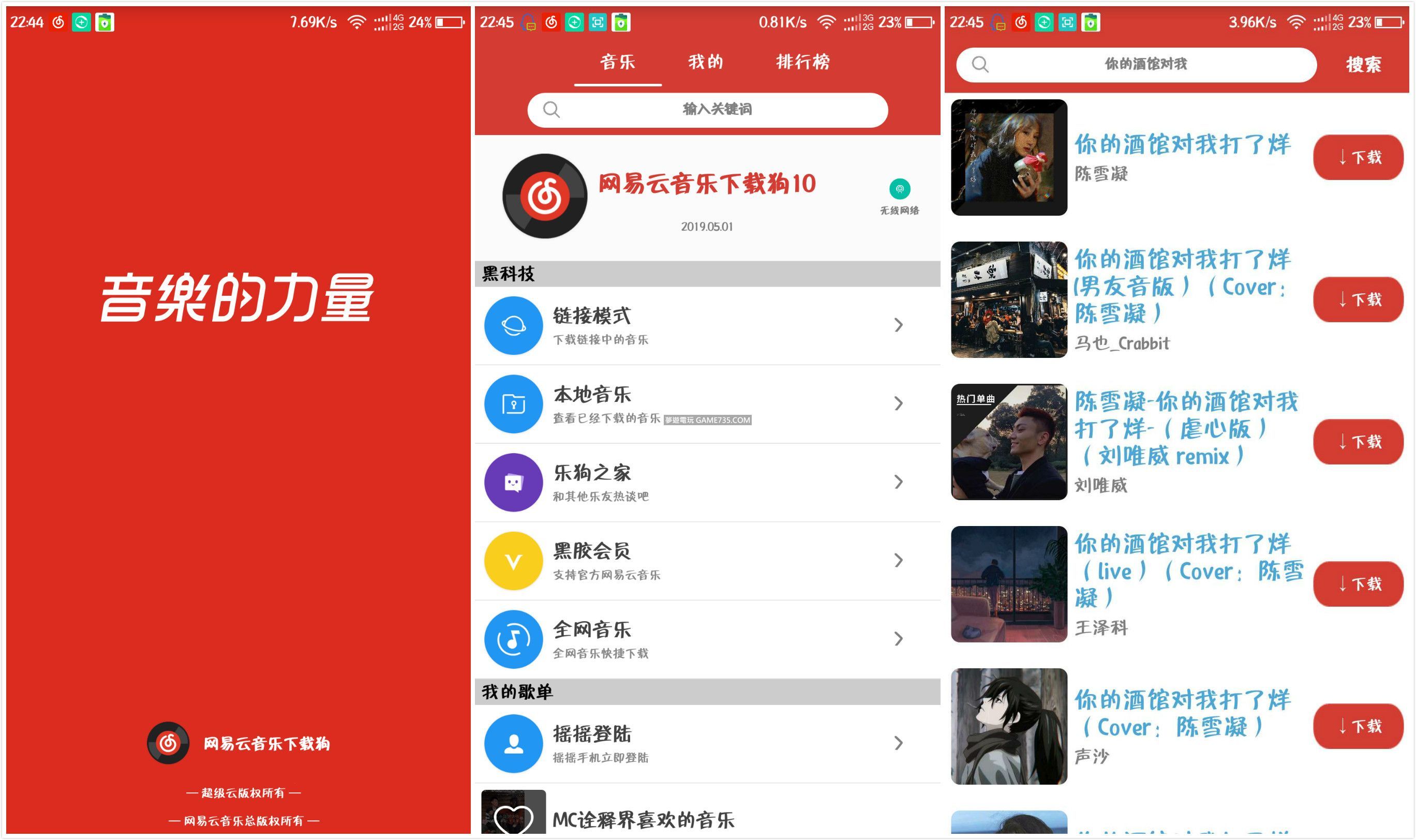 replyreload += ',' + 2183406; 〔應用名稱〕網易雲音樂下載狗 〔應用版本〕10.1 〔測試機型〕360手機 〔應用簡介〕一款免費免會員的音樂下載軟件,裡面的東西都是免費,沒有廣告界面簡潔!可以下載歌單/單曲,可以