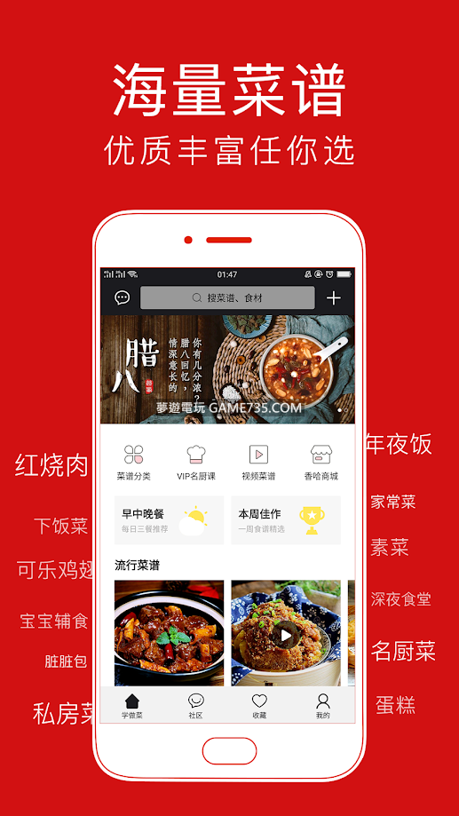 正文摘要:【語 言】 簡體中文 【軟體名稱】 煮菜軟體 香哈菜譜VIP 【軟體版本】 v7.3.5 【軟體大小】 27MB 【更新日期】 2019/5/9 【使用權限】 去廣告 【系統要求】 Android6.0+ 香哈菜譜是一款搜家常菜、烘焙、西餐、輔食的菜譜大全app! ‧菜譜大全,超過100萬道菜譜免費查看步驟超詳細 ‧美食視頻,每一道菜譜都有高清視頻演示做法 ‧五星好評,1億用戶的共同選擇,下廚必備精品軟件 ‧香哈菜譜app被評為《2018新手學做飯必備神器》 【更新內容】:2019-05-09 ‧五一長假各地特色美食襲來,趕緊下載一個吧! ‧優化:全新優化頁面體驗,瀏覽菜譜更順暢 ‧優化:更新名廚專業課,提高廚藝更輕鬆 ‧新增:美食活動專題,眾多福利大獎等你來拿! 【軟體截圖】 |